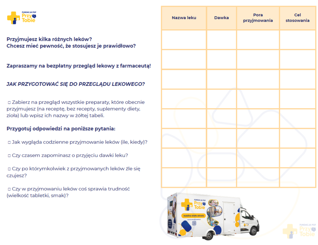 1. Zabrali ze sobą aktualną listę wszystkich przyjmowanych leków – zarówno na receptę, jak i bez recepty.